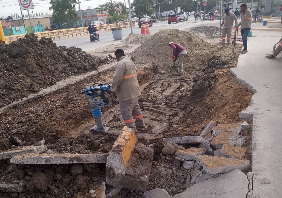 En esa área se introdujeron 110 metros lineales de colector de 14 pulgadas de diámetro con tubería de PVC alcantarillado, a una profundidad de 3.30 metros, en Bulevar al Puerto Industrial, entre Bulevar Allende y Coronel Trujillo, del referido sector.