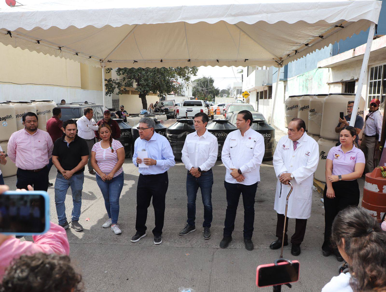 ALTAMIRA TAMAULIPAS.- El presidente municipal de Altamira, Dr. Armando Martínez Manríquez, encabezó la entrega de tinacos y una brigada de salud en apoyo a las familias del fraccionamiento San Ángel, quienes resultaron afectadas por el incendio ocurrido en un mesón el pasado fin de semana.