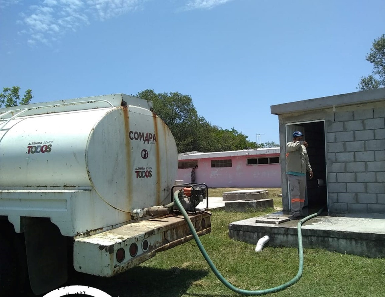 ALTAMIRA, TAM.- En apoyo a solicitud de agua potable por parte de la casa-hogar San Pedro, A.C., la cual alberga a pacientes psiquiátricos, la Comisión Municipal de Agua Potable y Alcantarillado de Altamira distribuye el vital líquido a través de pipas, para atender así las necesidades básicas de ese albergue ubicado en la Congregación Lomas del Real.