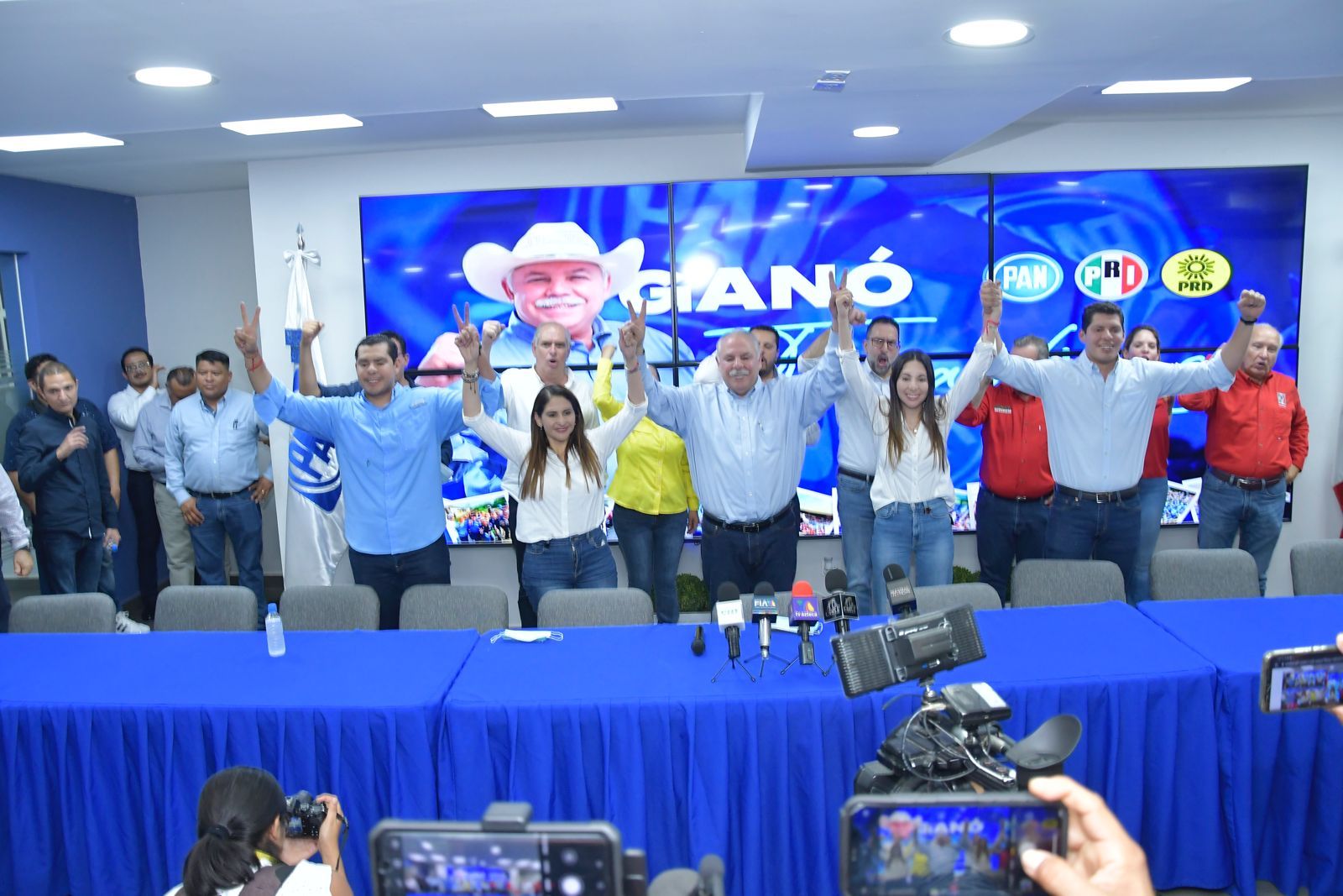 CD. VICTORIA, TAM.- Se lleva a cabo rueda de prensa donde Javier Lozano inicia. Buenas tardes a todas y todos, como hace un momento ya comentamos con los representantes de los distintos partidos que conforman esta alianza, esta alianza ganadora aquí en Tamaulipas, en Aguascalientes y en Durango. Les dijimos que el candidato César El Truko Verástegui, candidato ganador no tenía intervención con los medios de comunicación por el respeto que le tiene a la legislación electoral hasta que la autoridad en la materia se pronunciase con actas en la mano en este ejercicio de conteo rápido.