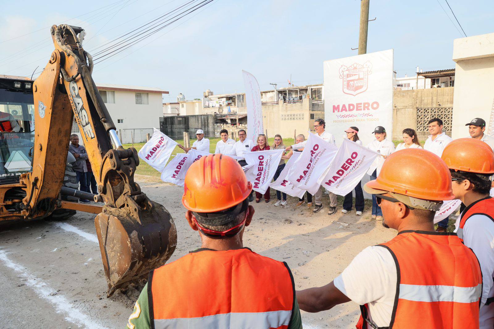 CD. MADERO TAMAULIPAS.- El presidente municipal Erasmo González Robledo inició la pavimentación con concreto hidráulico de la calle Antonio Ábrego, ubicada en la colonia Jesús Luna Luna, como parte de su compromiso por un Madero más próspero para todos.